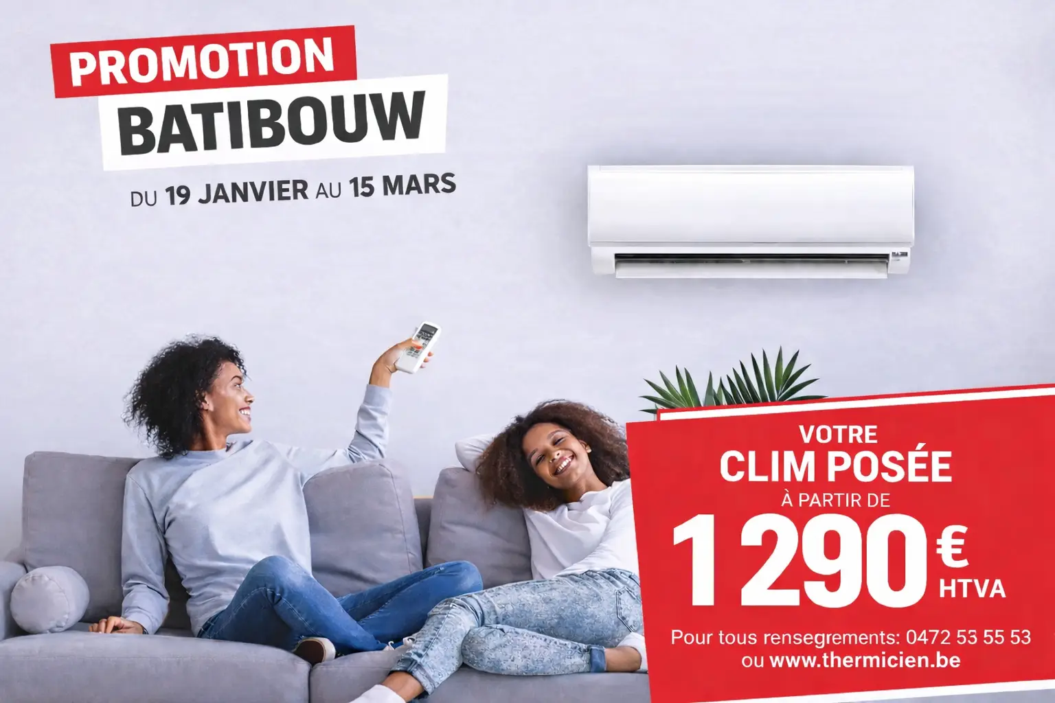 Votre clim posée à partir de 1290€ HTVA.